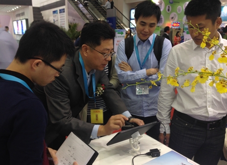 柳总:电容是现在的热点,电容触控,但是电容触控现在全是支持手触。现在我们说到触控理解有两种,触控一定是两种技术,一种是手,一种就是笔。现在手有它的好处,很多操控比如娱乐、游戏、翻页,这种属于操控性的用手来的最快、最方便,所以这是它最根本的对触控技术的需求引导出这样的技术。同时触控市场还有一种期待,就是笔。因为笔的应用凡是涉及到输入、轨迹,笔来的比手更方便、更精确,主要是精度,因为手是粗线条的,笔是更加精确的,我们本身也在做电容式的笔触控技术,现在又说道电容笔技术和电磁笔技术有什么区别?电容式的,我一会儿给你看产品,电磁是我刚讲的,所有电磁笔的技术由两部分组成,一个是笔,一个是方在屏后面的触控板,在上产环境LCD的背面一定要加上触控板。就这一支笔,只需要在触控芯片里面做一支驱动软件的配合,这支笔就可以用了,就是生产环节比较简单,不需要再放进触控模组,会简化生产流程。